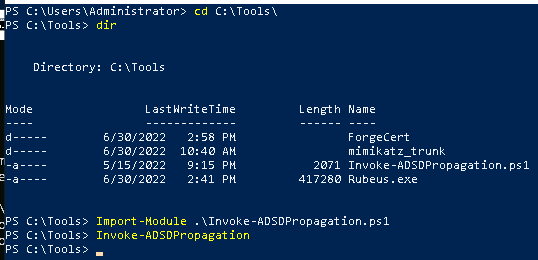 PS C:\Tools> Import-Module .\Invoke-ADSDPropagation.ps1 PS C:\Tools> Invoke-ADSDPropagation