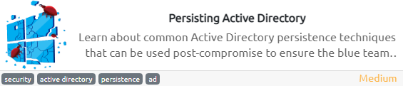 Есть несколько различных способов, с помощью которых мы можем закрепиться в AD. Некоторые из этих методов лучше, чем другие. Чтобы команда ИБ не смогла вышвырнуть нас из домена, придется творчески подойти к вопросу закрепления. Кроме того, не следует ждать полной компрометации домена, чтобы обеспечивать постоянное присутствие. После каждого этапа горизонтального перемещения и повышения привилегий следует закрепляться.
