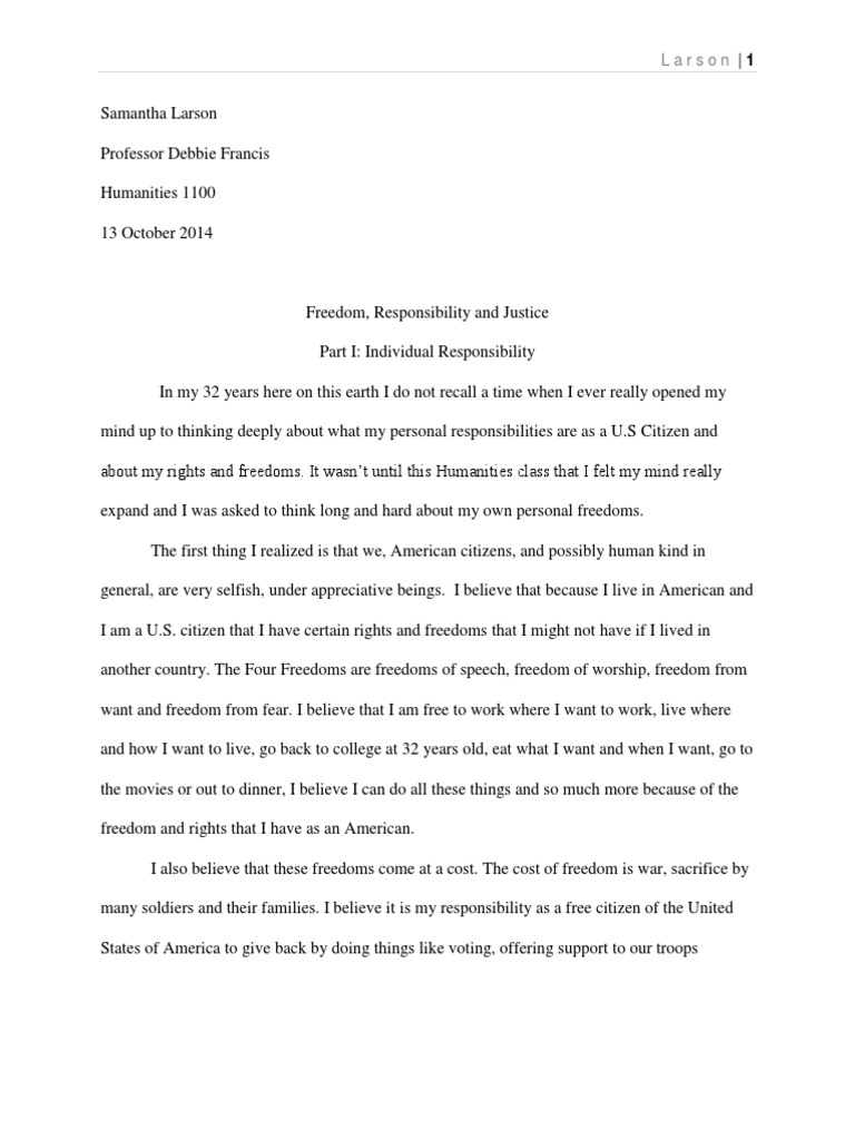 Personal Responsibility - 1396 Words | Essay Example