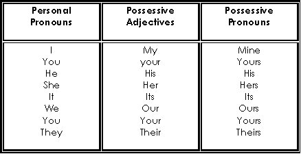 Personal pronouns and adjectives
