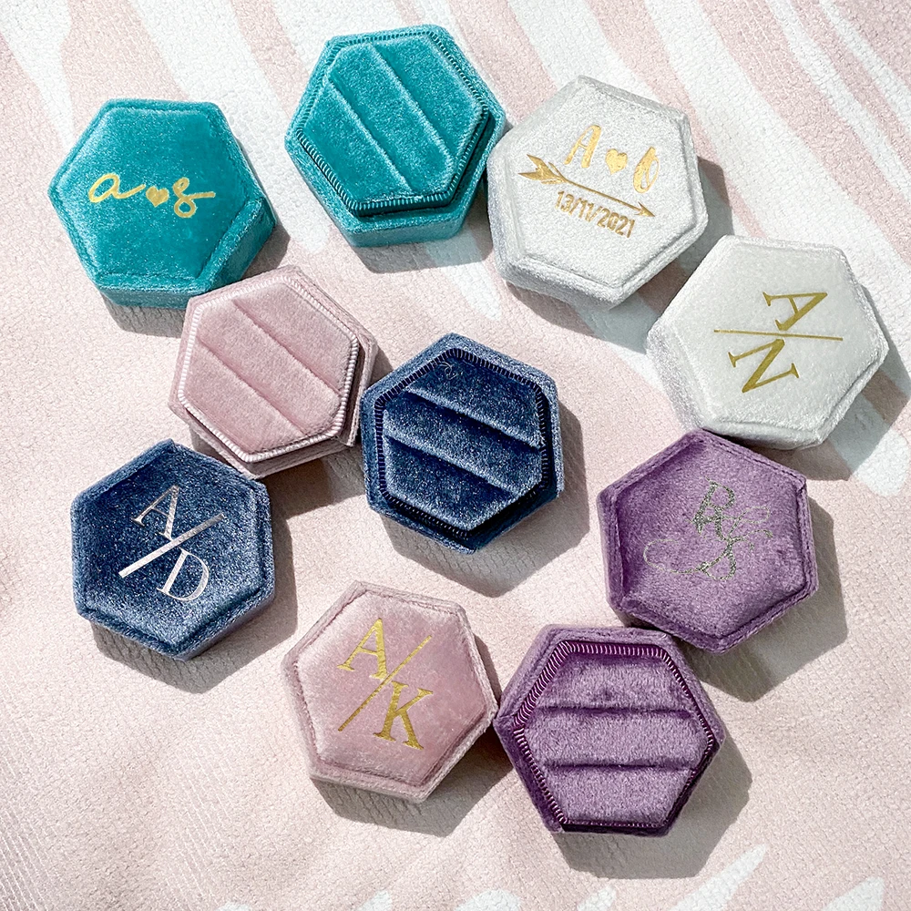 RfxQTwcdYHere you can buy Personalise Velvet Ring Box Hexagonal Single/Double Ring Storage Box Wedding Engagement Gift Ring Box Holder Handmade Retro with free delivery to your post office.
