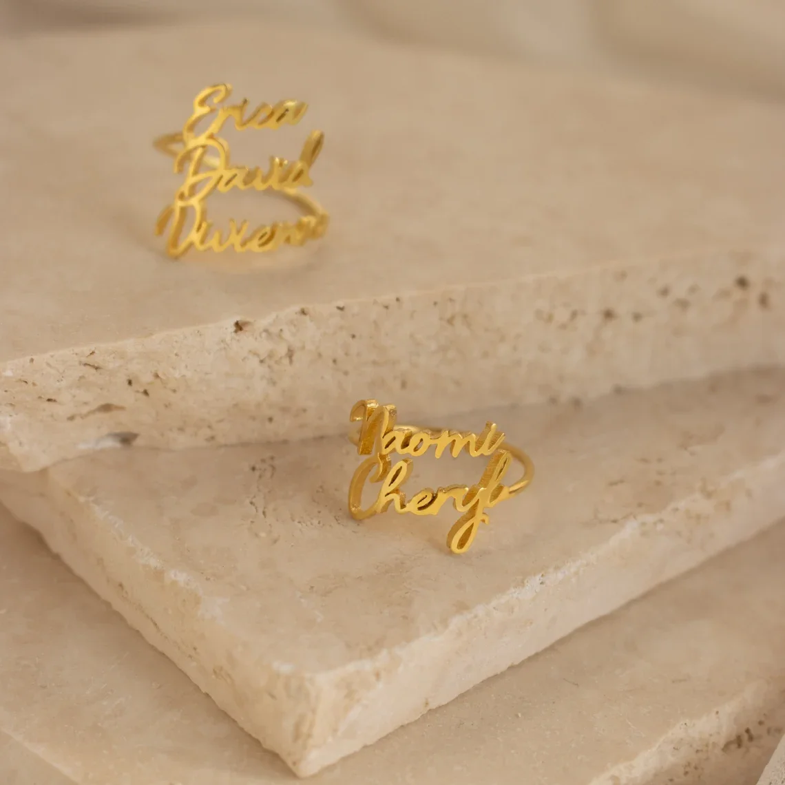 Personalised Custom Double Name Rings Gold Stainless Steel Open Adjustable Couple Promise Rings for Women Romantic Jewelry Gifts - Купить с бесплатной доставкой