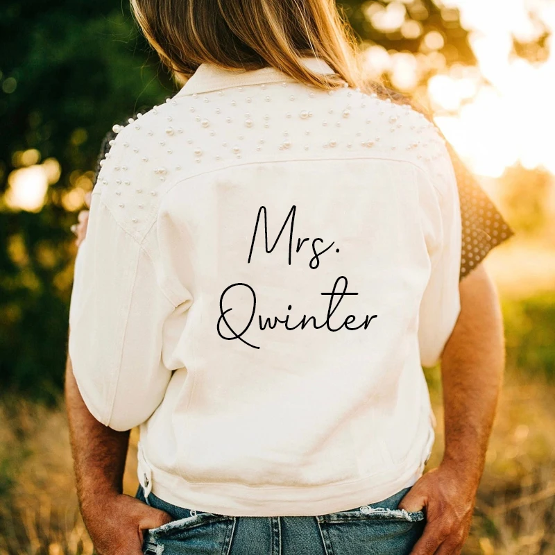 "Personalised Text Mrs Bride Denim Jacket Customized Denim Jacket Jean Jacket Bride Gifts Bridesmaid Jacket Wedding Jacket Name" * Buy Now Just For 22$
