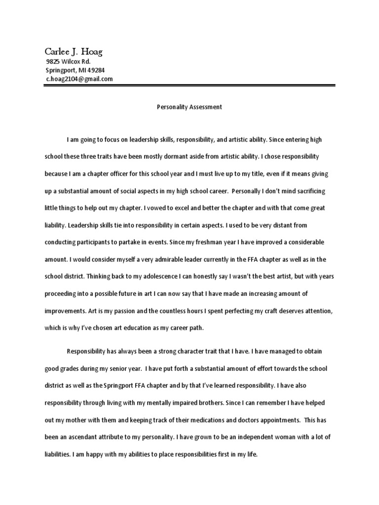My Personality Essay Example For Students | Artscolumbia