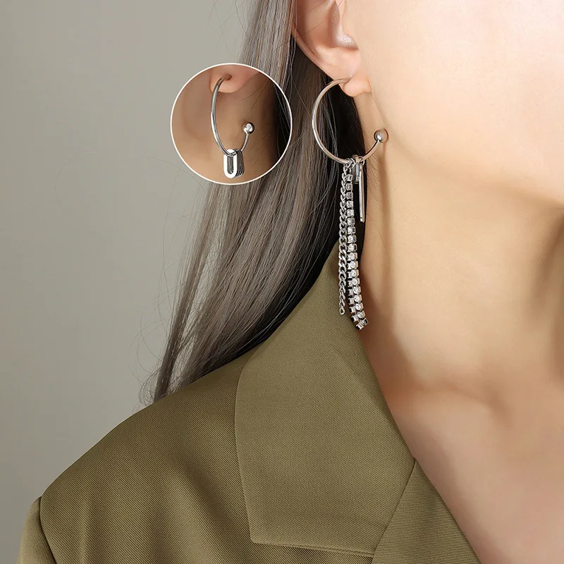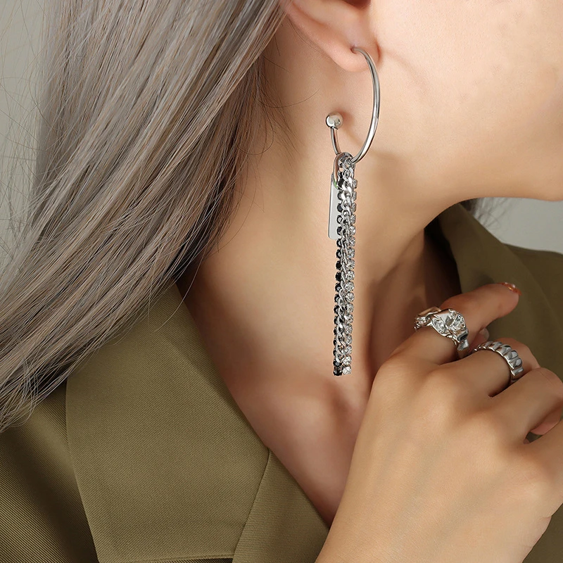 «Personality Street Shooting Earrings Zircon Chain Geometric Square Pendant Asymmetric Titanium Steel Earring Dinner Ins Jewelry» по лучшей цене на рынке! Всего за 3$ (285рублей)