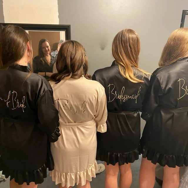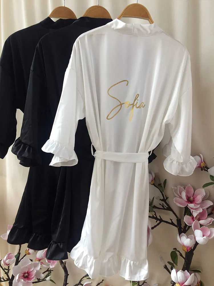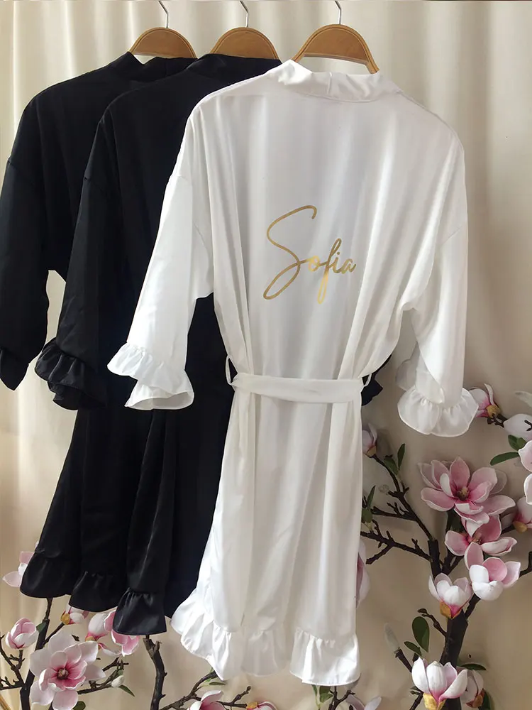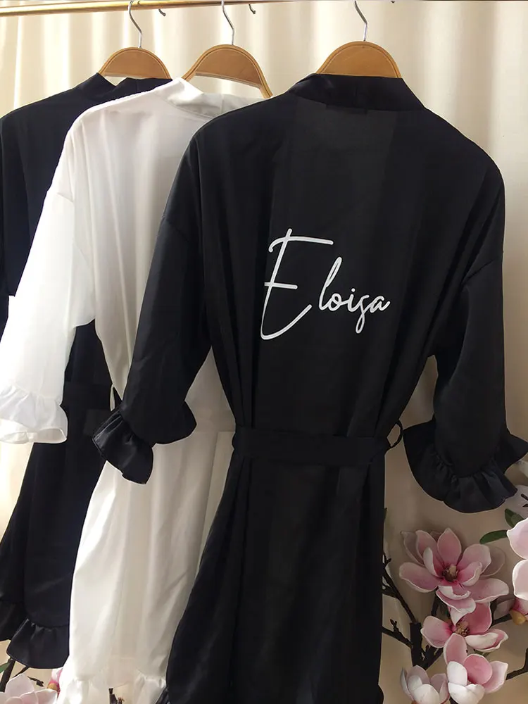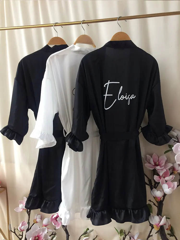 QMnCotJFHere you can buy Personalized Signature Ruffled Robes Black Wedding Dressing Gown Customized Ruffled Silk Pajama Team Bride Shower Set 2023 Women with free delivery to your post office.