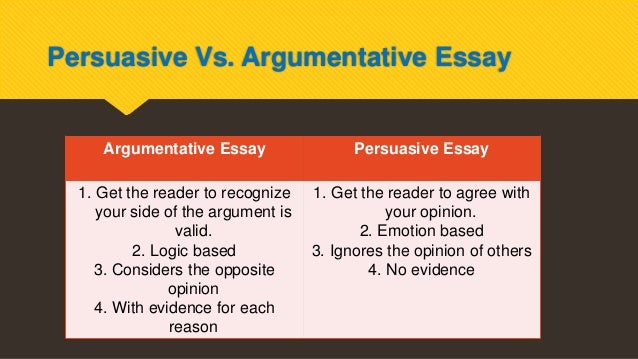 οΈ Persuasive vs . Argumentative Essay Topics . These two genres of an essay are often mistakenly used as synonyms . However, the difference between them is distinct and should be taken into account, depending on the assignment or your purpose .