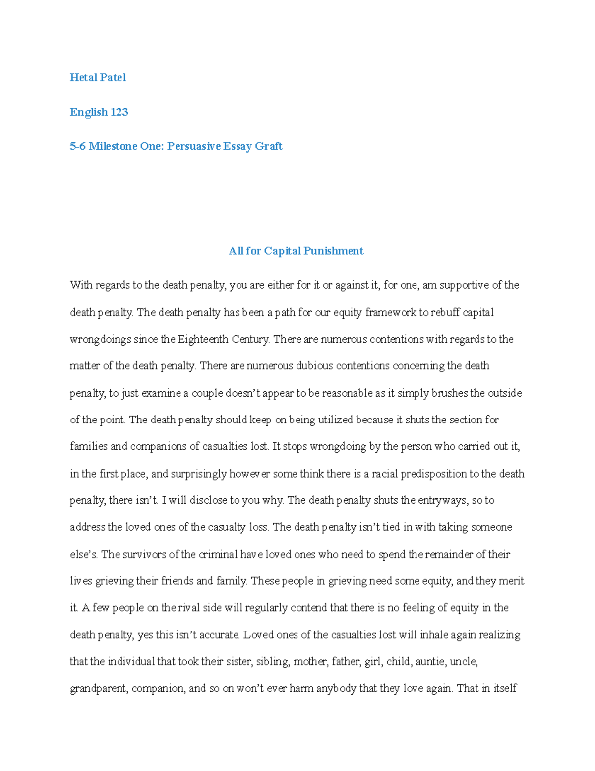 Persuasive Essay : Capital Punishment - 1200 Words | Bartleby