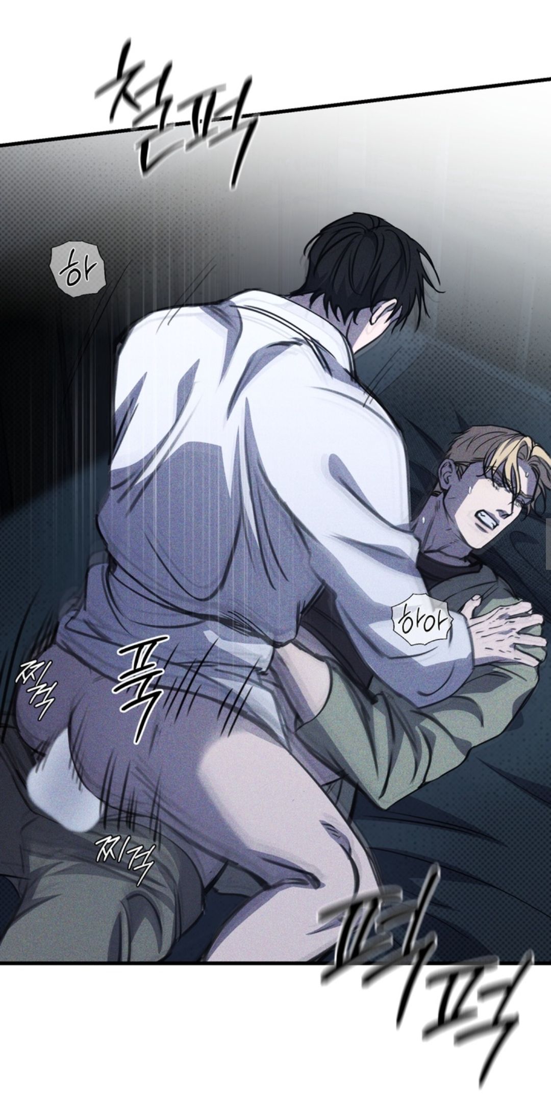 [Валерий, смотрящий широко раскрытыми глазами на растрепанное лицо Алексея, казалось, пришёл в себя при этих словах. Он с опозданием попытался оттолкнуть Алексея, но отпускать его не собирался. С силой надавив на плечо Валерия, Алексей начал двигаться самостоятельно. Он просто забирался наверх и поворачивался спиной, как делал делал много раз. Но теперь в другой позиции.]