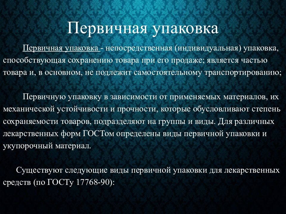 Первичная упаковка продукта