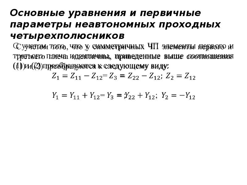 Первичные и вторичные параметры