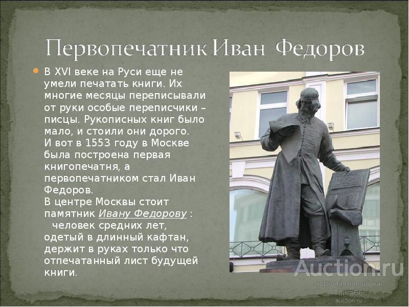 Первопечатнике иване федорове 3 класс