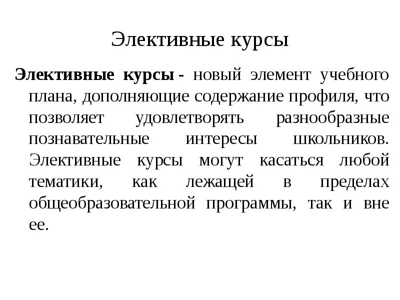Первые элективные курсы