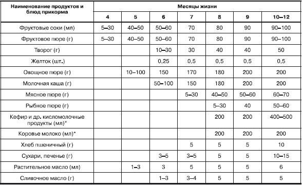 Правила ввода прикорма, таблица . Первые месяцы исключительно грудного вскармливания Прикорм — группа продуктов в рационе детей первого года жизни, кроме грудного молока и . . .