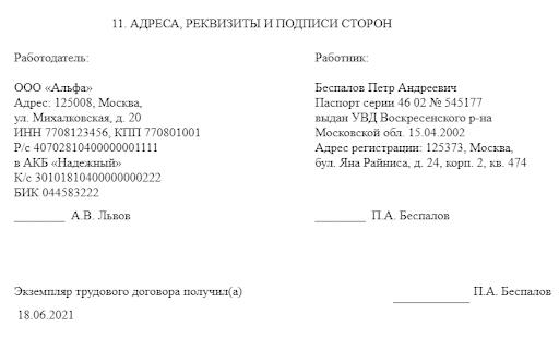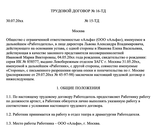 Первый лист договора