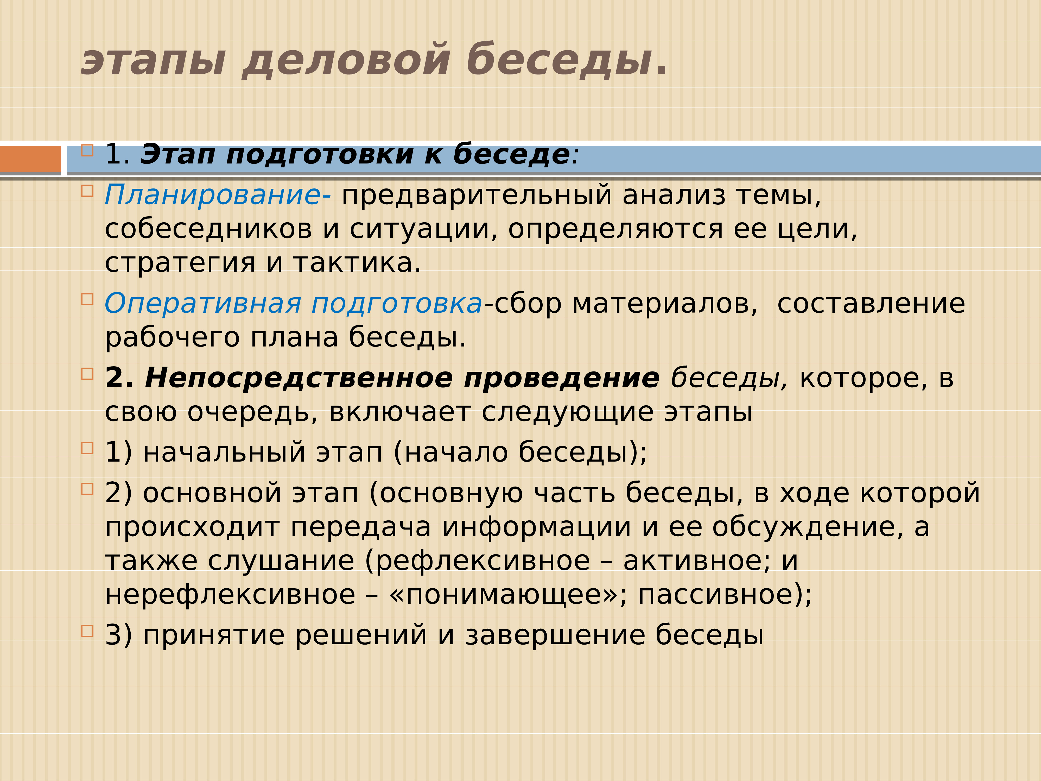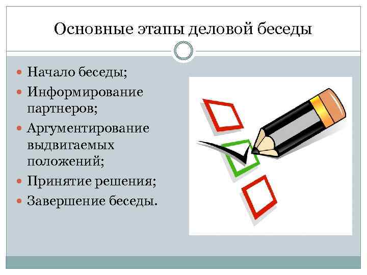 Первым этапом деловых бесед или