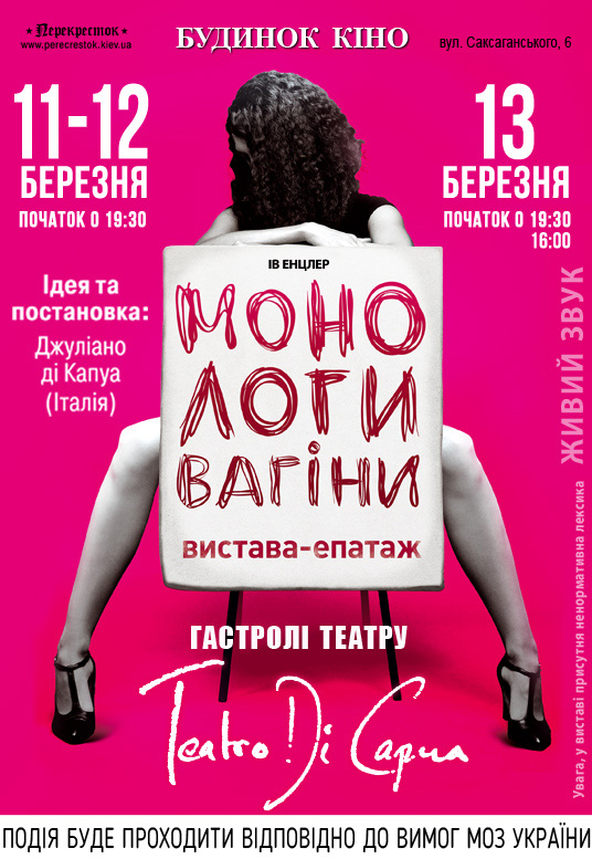 «Монологи вагины» - культовая пьеса Ив Энцлер, написанная в 1996 году, почти что манифест . Одна за другой на сцену выходят актрисы и произносит текст от «лица» своей вагины .