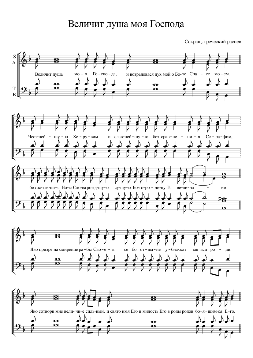 Песнь богородице величит душа моя