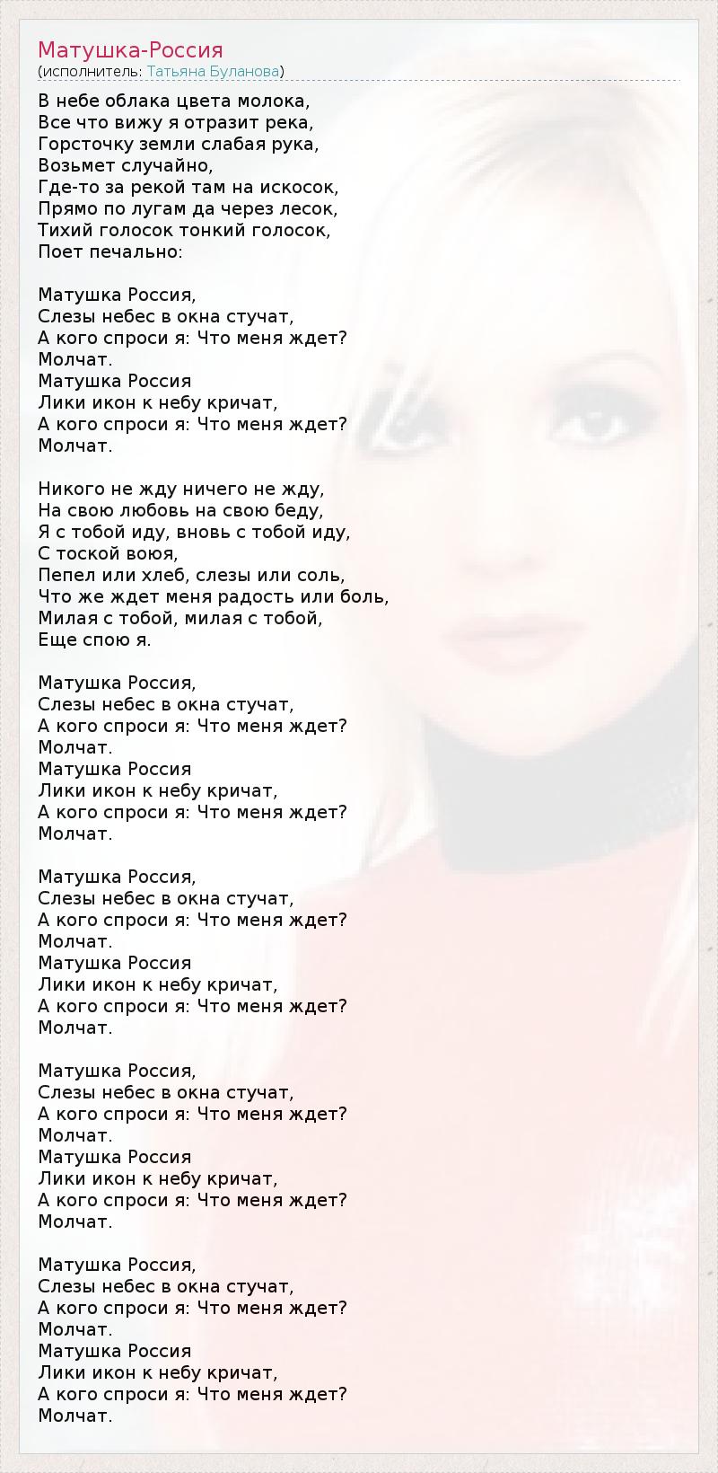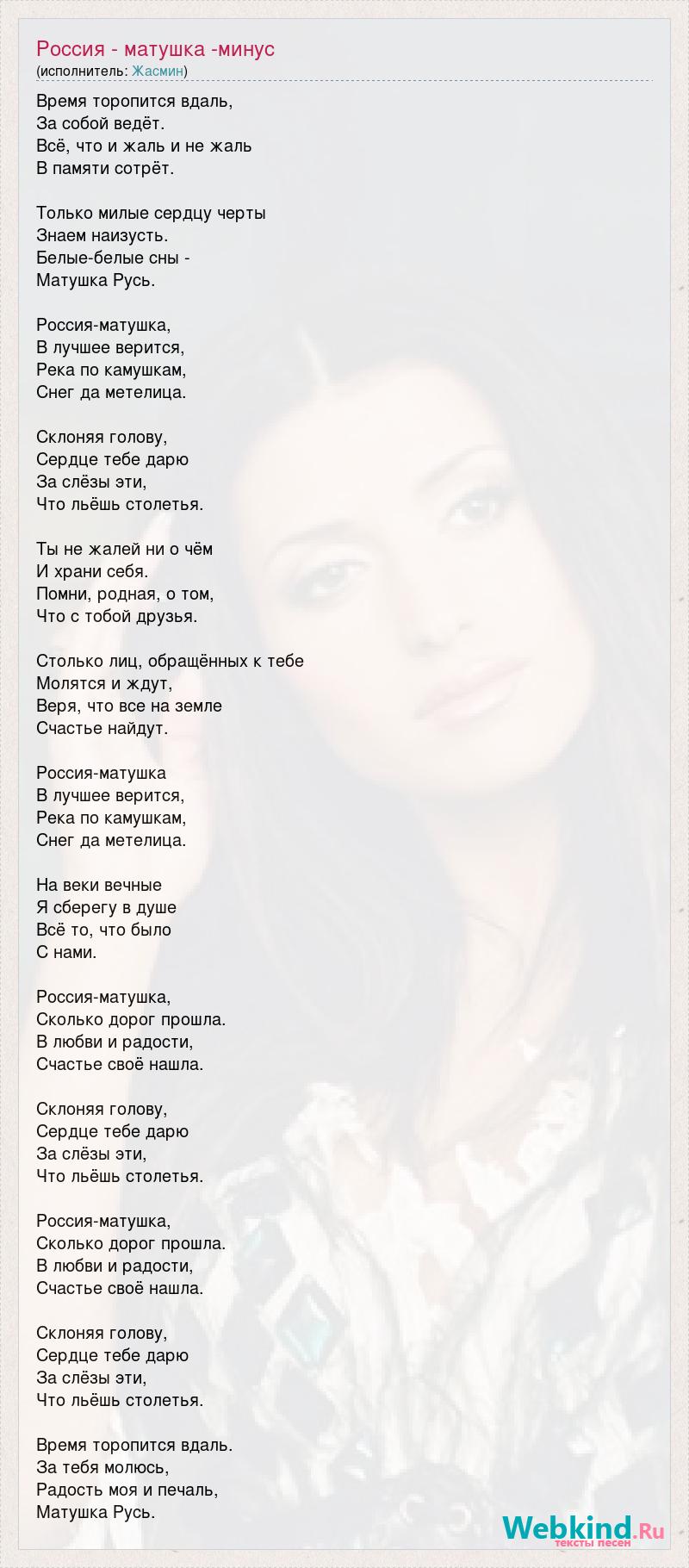 Песня матушка текст минус