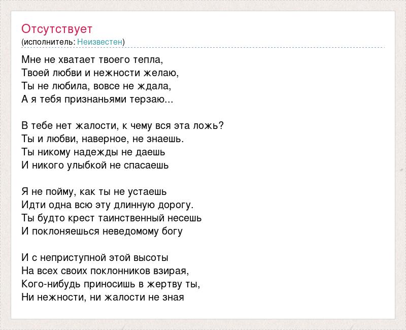 Песня мне не хватает твоей теплоты