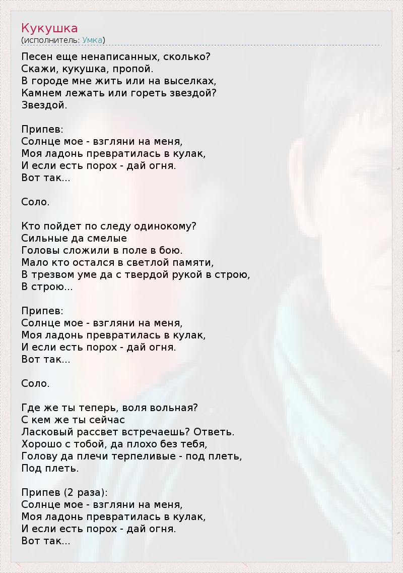 Песня разбуди меня утром кукушка