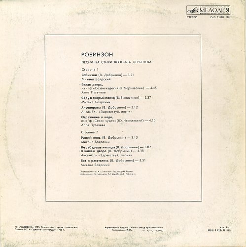 Песня робинзон аллы