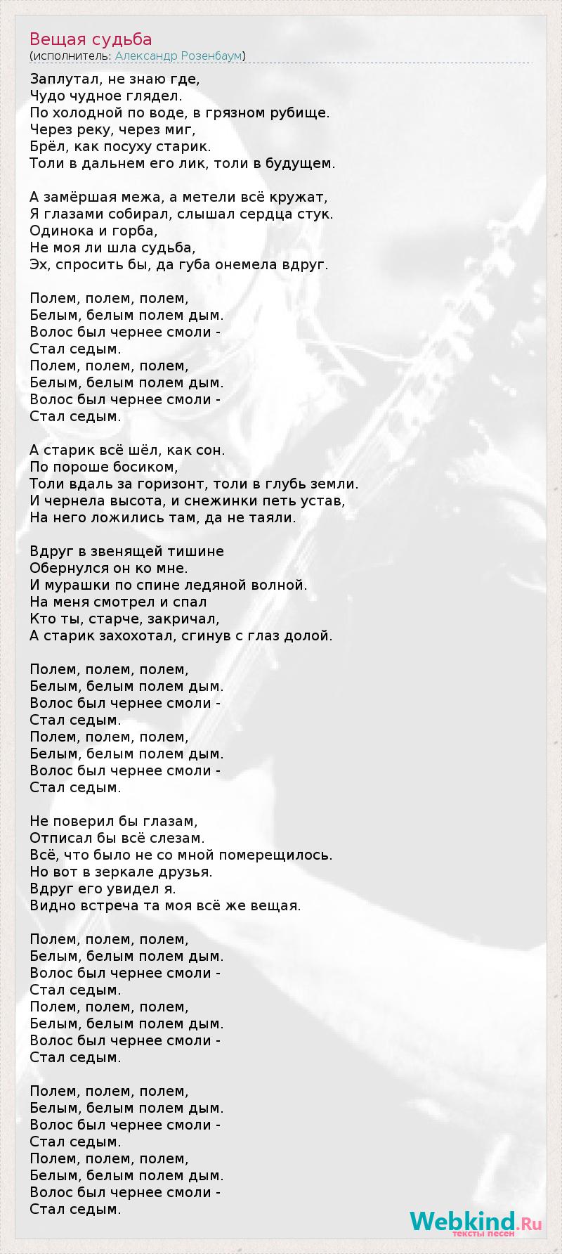 Песня розенбаума белым полем