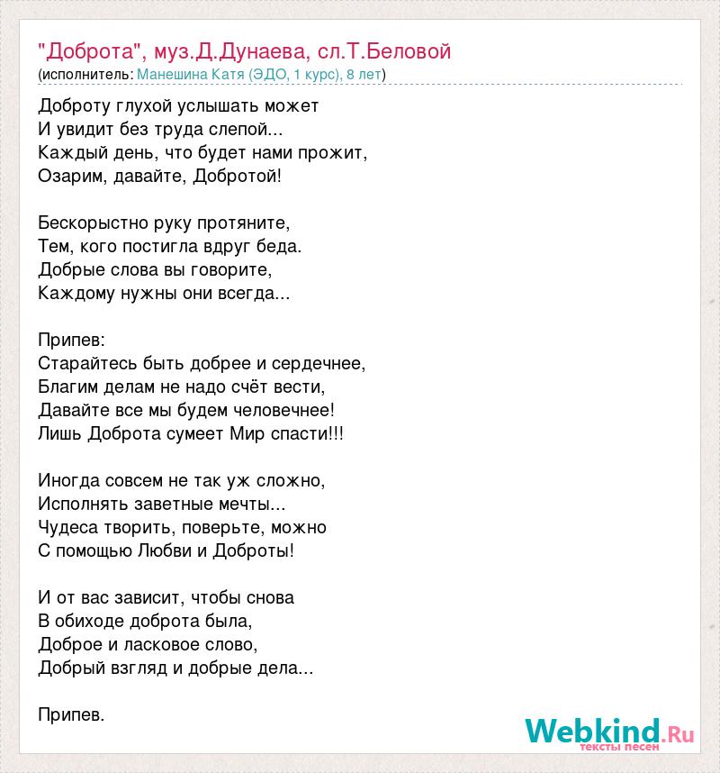 Песня со словами доброта