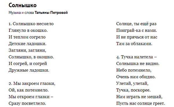 Песня танцует в небе солнышко