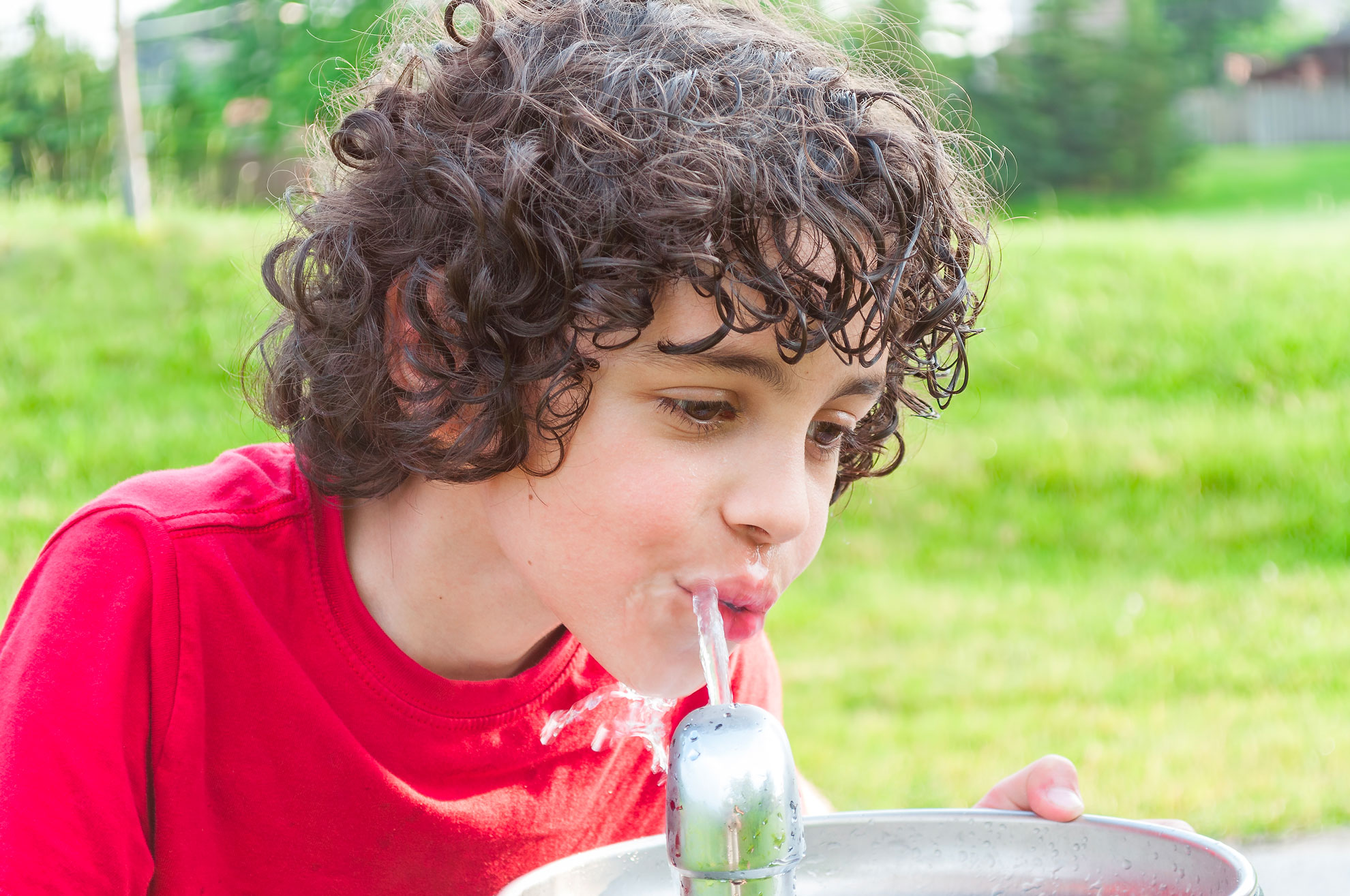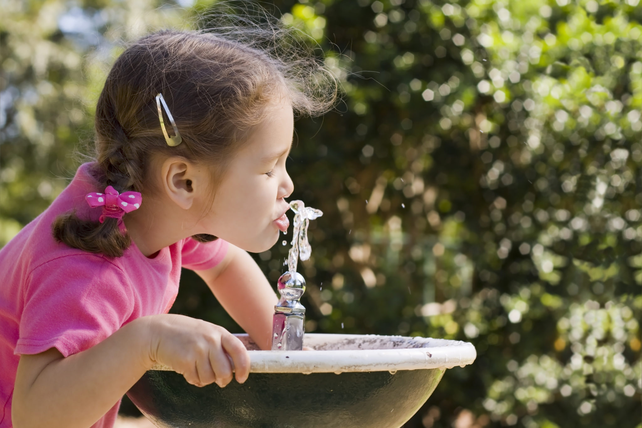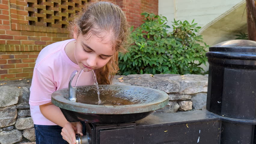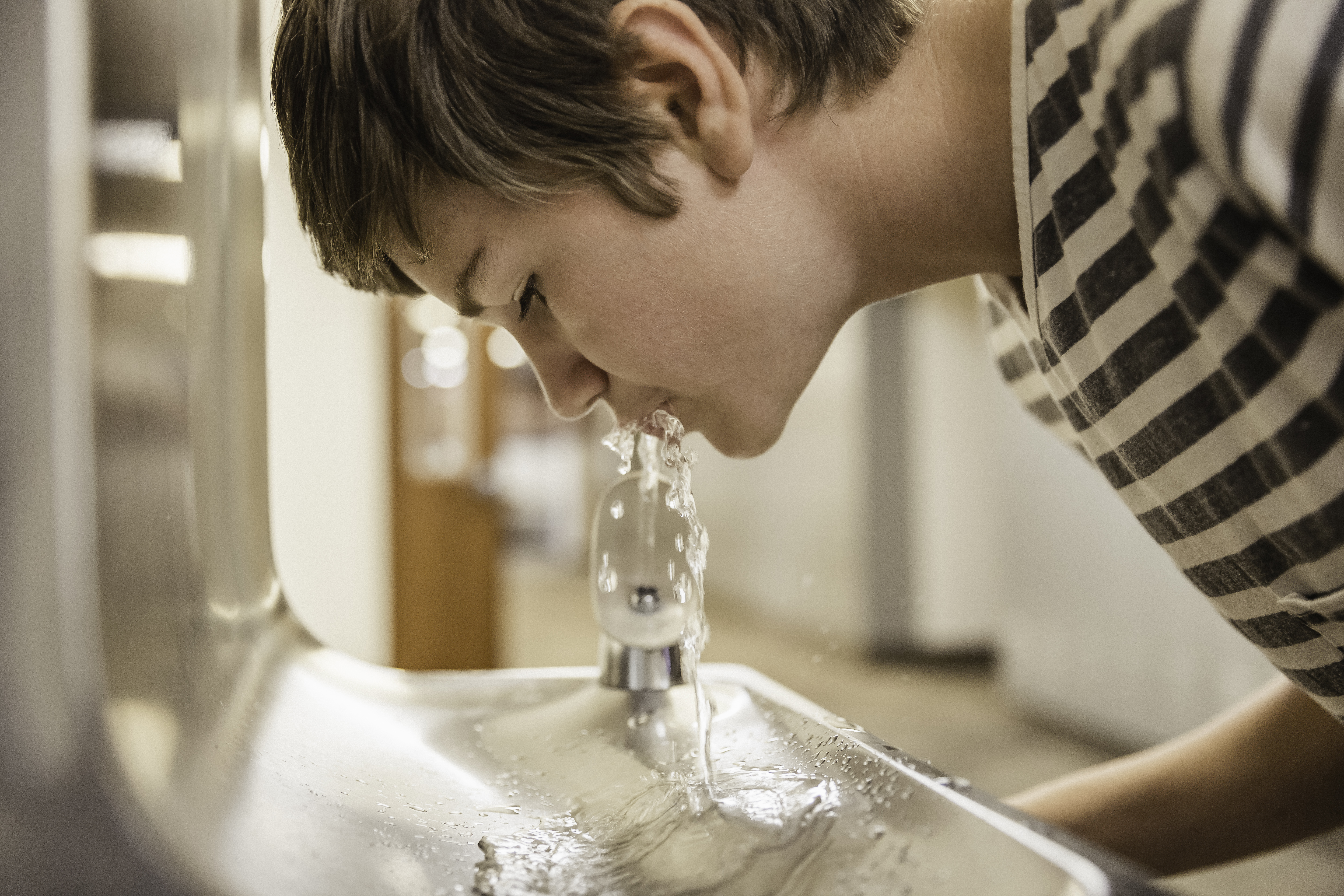 Пьет из фонтанчика