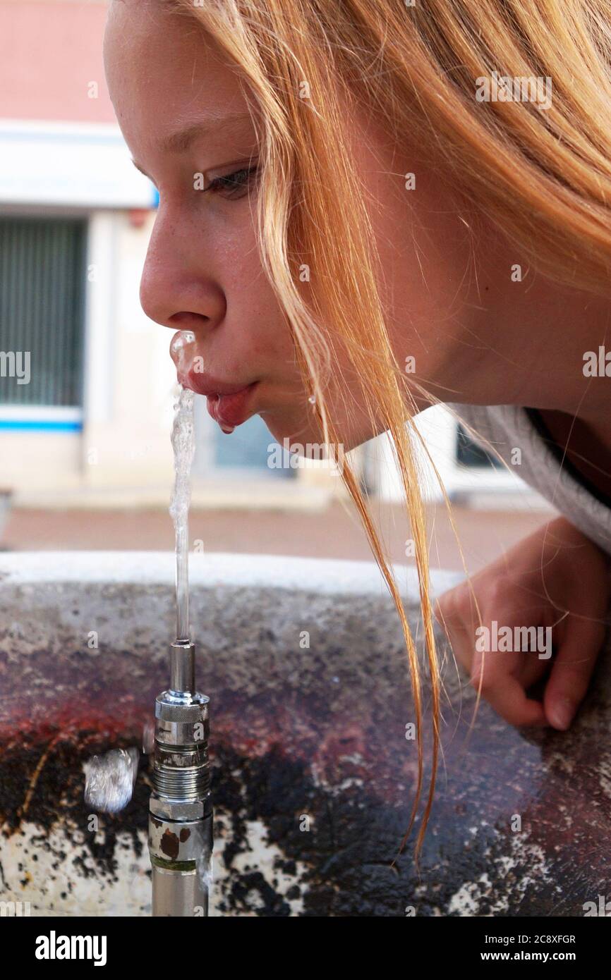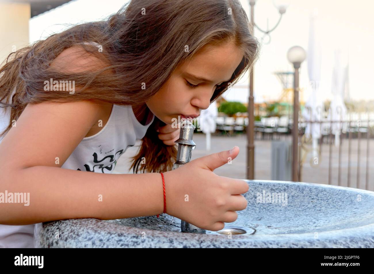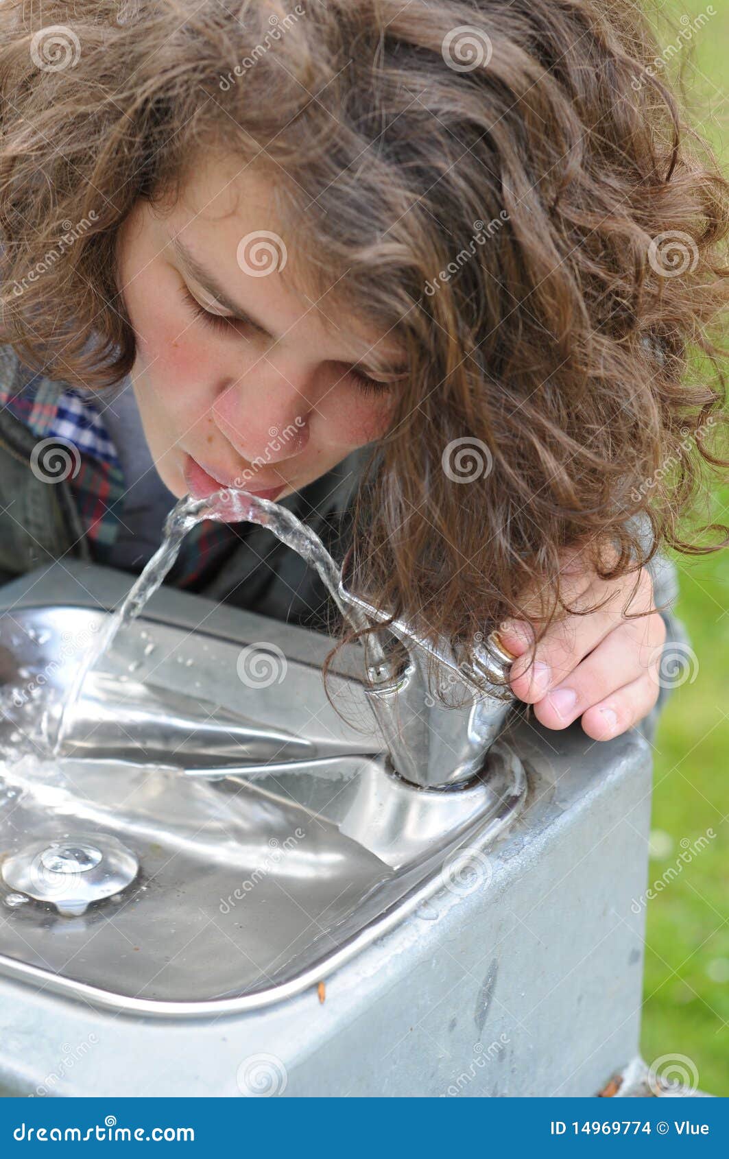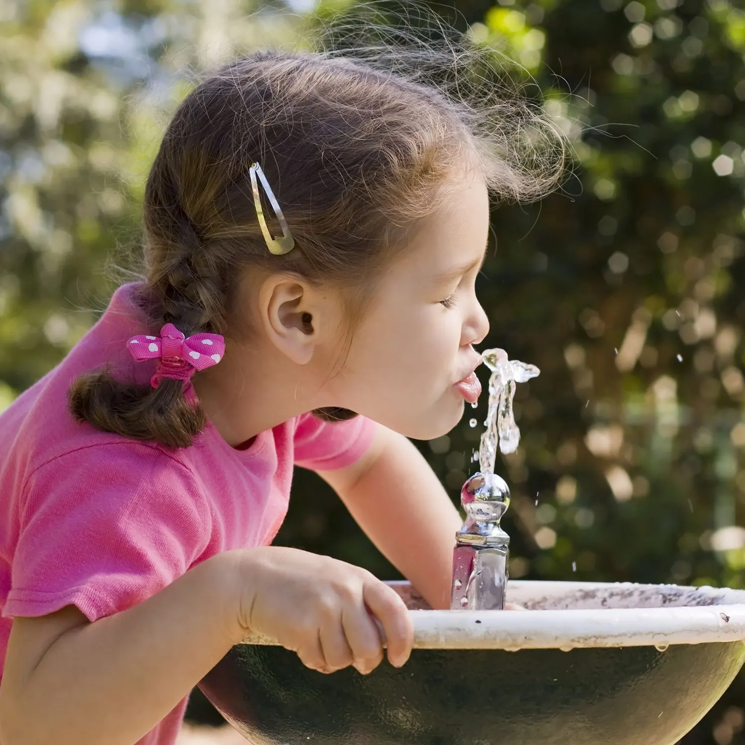 Пьет из фонтанчика