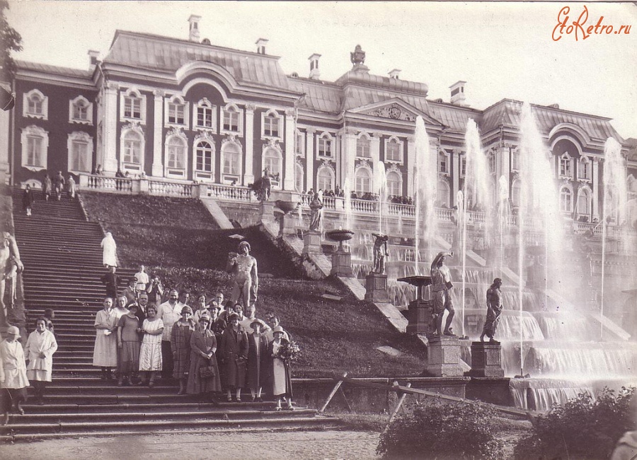 Петродворец в 19 веке . . . что уже знакомо всем туристам по фото- и киноматериалам, туристическим буклетам, . . . которая именно отсюда направилась в Петербург, где произошел дворцовый переворот . . .