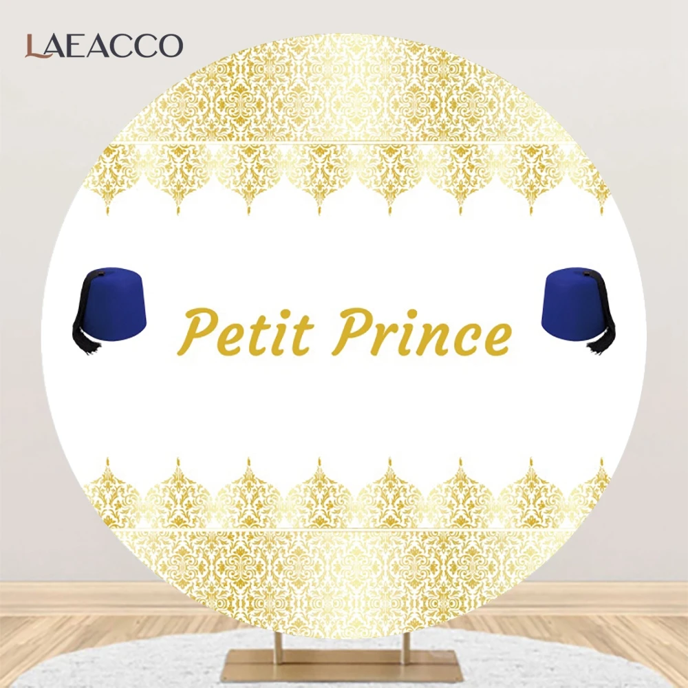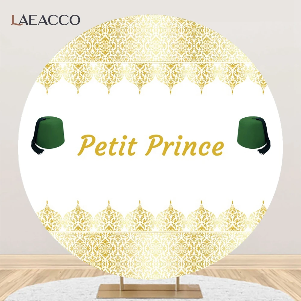 "Petit Prince Old Vintage Gold Flower Pattern Green Hat Baby Birthday Party Round Photographic Backdrop Customized Backgrounds" * Buy Now Just For 15$