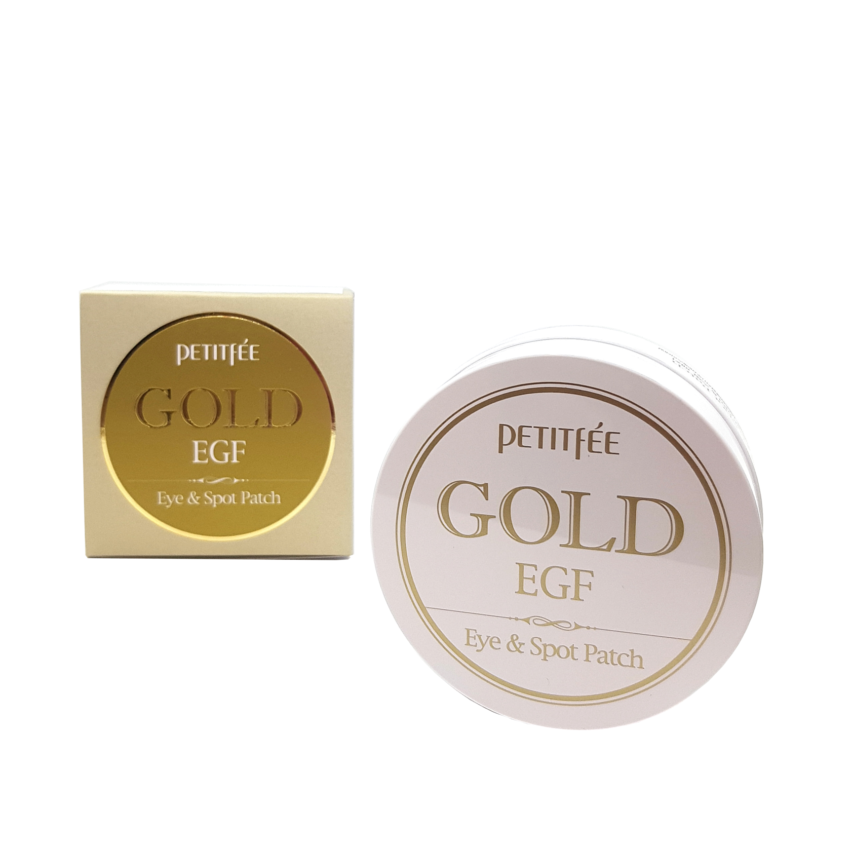 Патчи для кожи вокруг глаз от корейского производителя Petitfee упакованы в коробку золотистого цвета, сделанную из картона . Коробка содержит пластиковую баночку того же цвета .