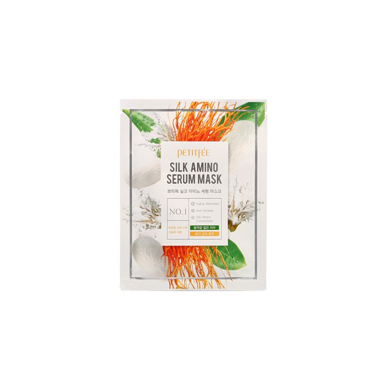 Petitfee Silk Amino Serum Mask - тканевая маска с протеинами шелка. Оказывает отличный лифтинг-эффект, делает кожу гладкой и плотной, восстанавливает кровообращение и улучшает обмен веществ в тканях. В составе маски присутствует огромное количество полезных витаминов, протеинов и микроэлементов, которые повышают иммунитет и обогащают кожу.