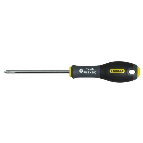 Phillips tornavida STANLEY Fatmax PH (Stanley) 0-65-207. Çubuk, dayanıklılık sağlayan ve kırılma olasılığını azaltan krom vanadyum çeliğinden yapılmıştır. Kumlama, ucu korozyona karşı korur. Sap, parçalar arasında güçlü bir bağlantı sağlayacak şekilde çubuğun üstüne kalıplanmıştır. Pürüzsüz kubbeli kenar maksimum çalışma konforu sağlar. Sapın konikleştirilmesiyle tornavida üzerinde daha fazla kontrol sağlanır. Renk kodlaması, ilgili yuva için tornavida tipinin doğru şekilde tanımlanmasına yardımcı olur.