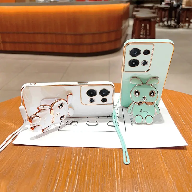 vIJxAvTEHere you can buy Phone Case For Oppo Reno 8 Pro 5G Luxury Plating Square Rabbit Holder With Landyard Case Cover with free delivery to your post office.
