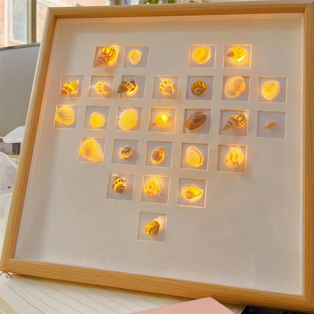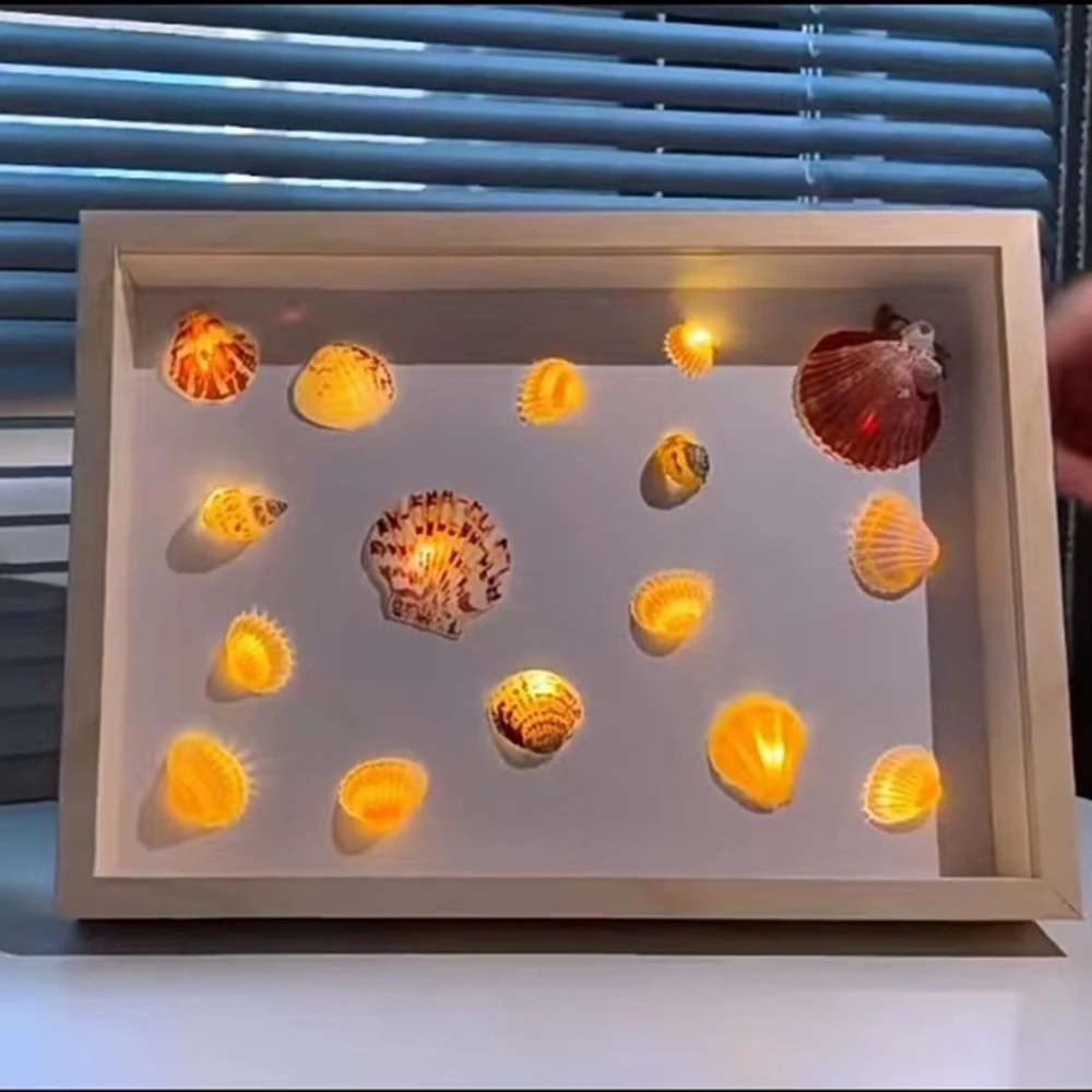 Photo Frame Shell Wooden Night Light Handmade DIY Material Package Table Frame Ornaments Picture Frame Birthday Gift - Купить с бесплатной доставкой