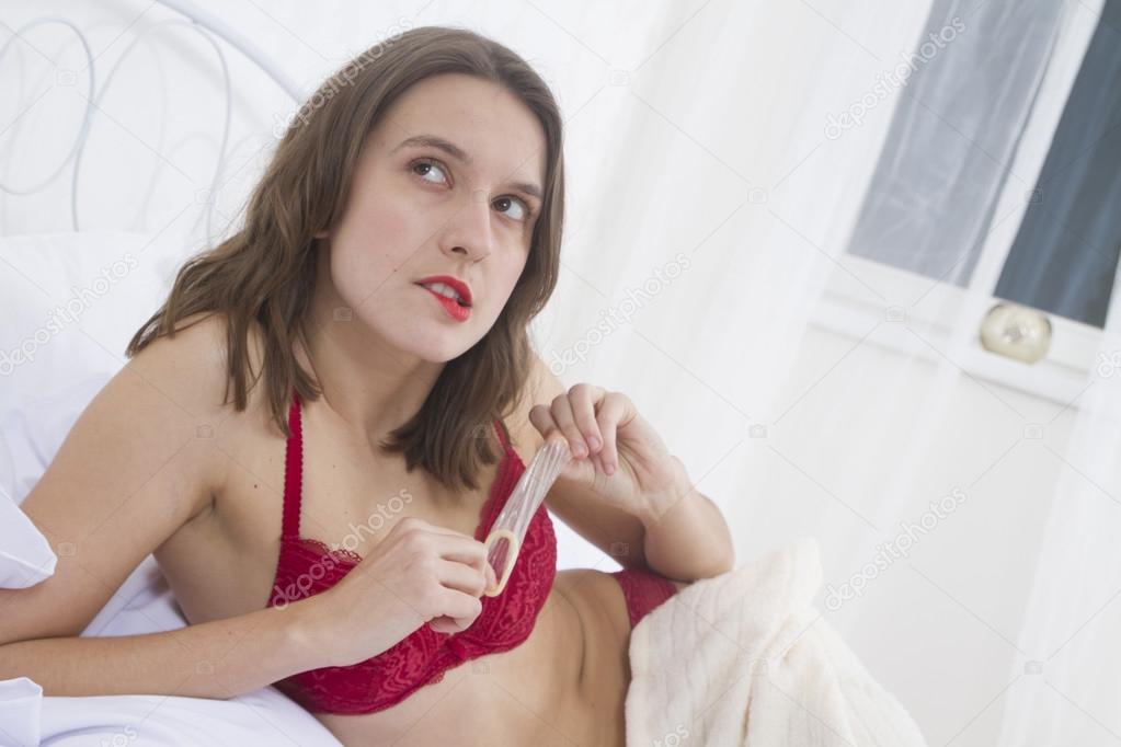 Sex on the phone. Woman laying in a bed