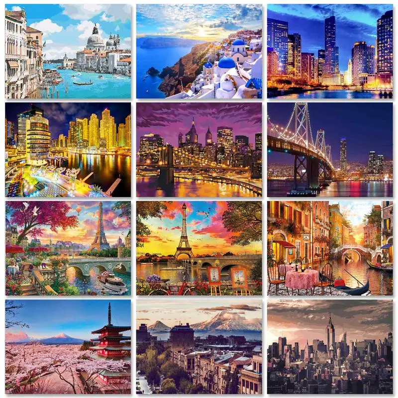 Kupit CHENISTORY 40x50cm Pictures By Numbers Tower Scenery Kits Diy Paint By Number Girl Drawing On Canvas Handpainted Gift Deco 10 11