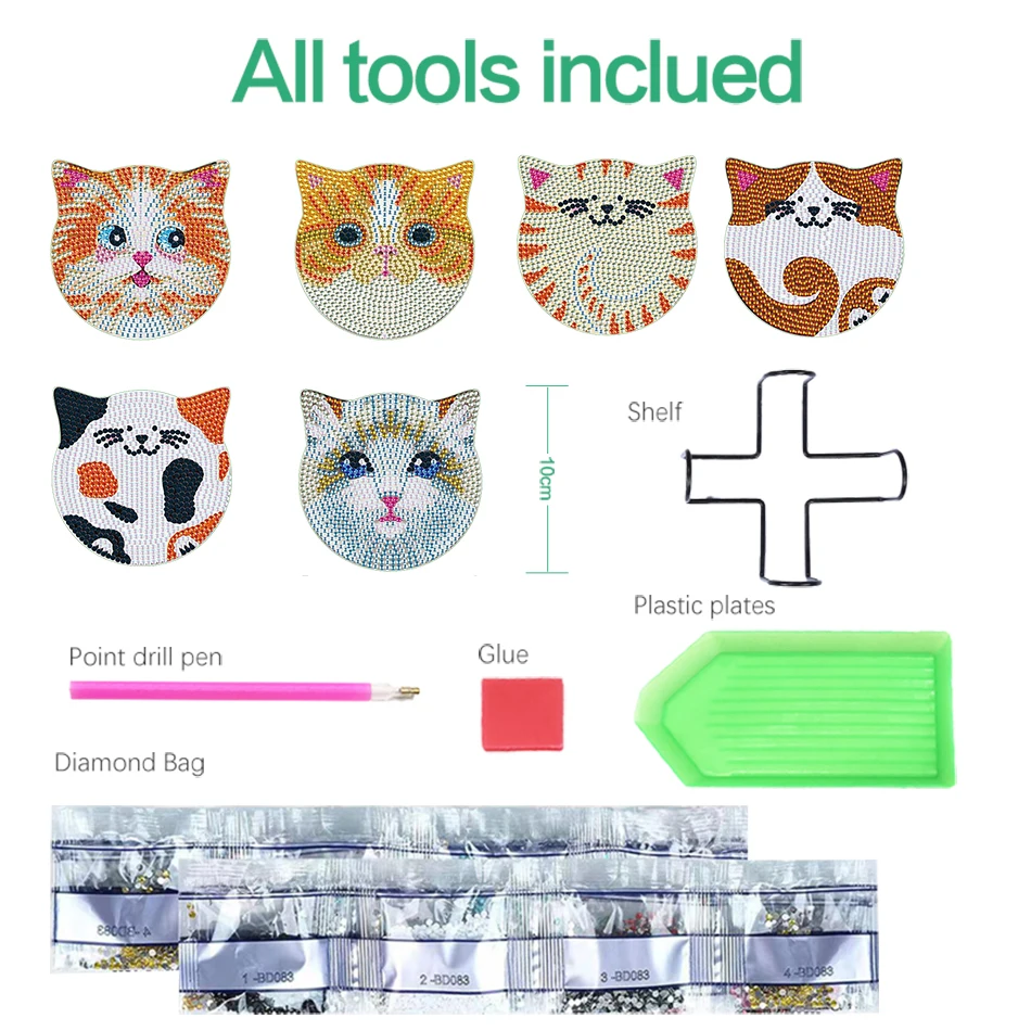 kgtSEolVNHere you can buy PhotoCustom 6pcs DIY 5D Diamonds Painting Coaster Kit Cat Animals Embroidery Cup Cushion With Rack Table Placemat Mat Kitchen with free delivery to your post office.