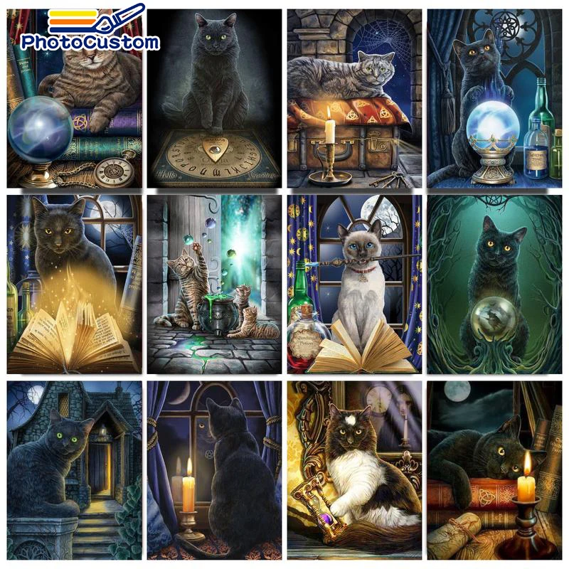 «PhotoCustom Frame Night Animal Cat DIY Painting By Numbers Handpainted Oil Paint Home Wall Art Picture For Home Decor Gift» по лучшей цене на рынке! Всего за 6$ (570рублей)