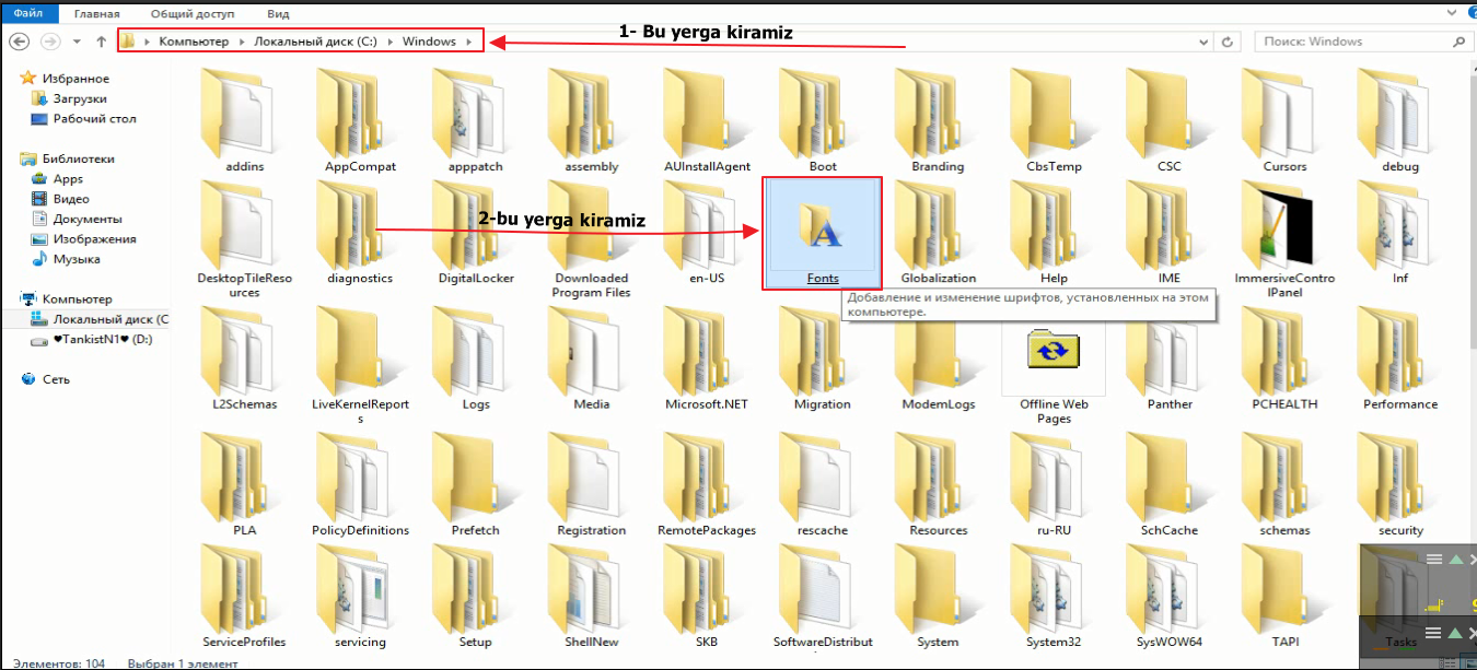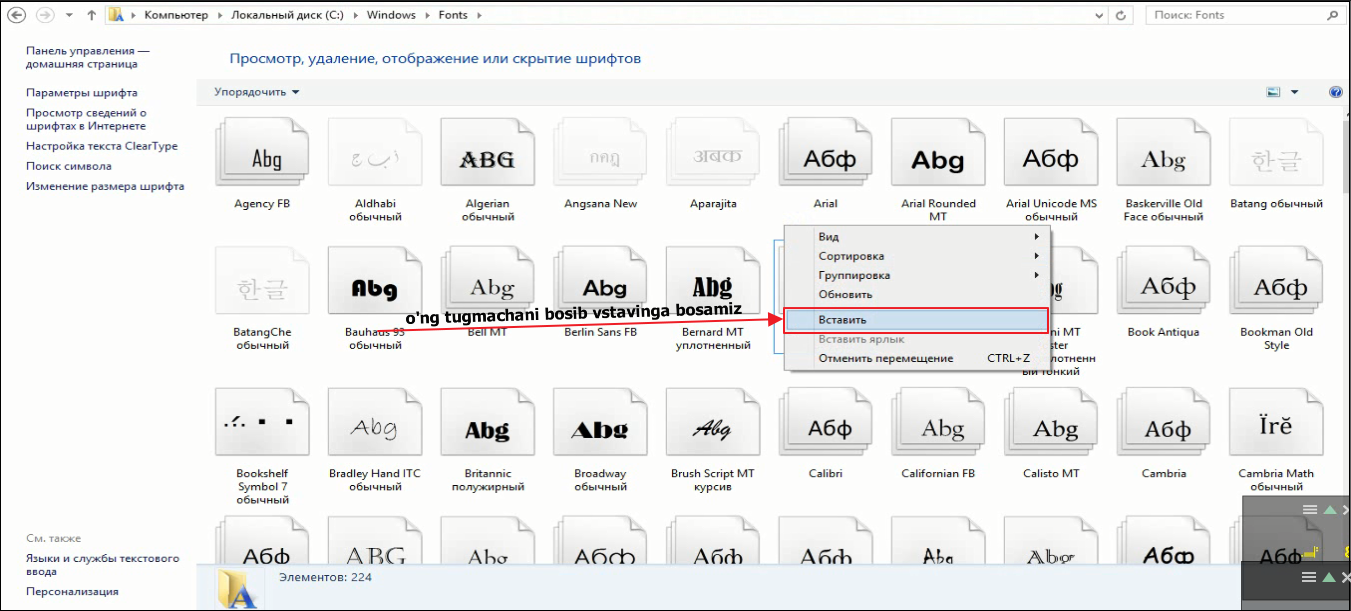 So'ng C diskga kirasiz-Windows-Fonts yani:C:\Windows\Fonts