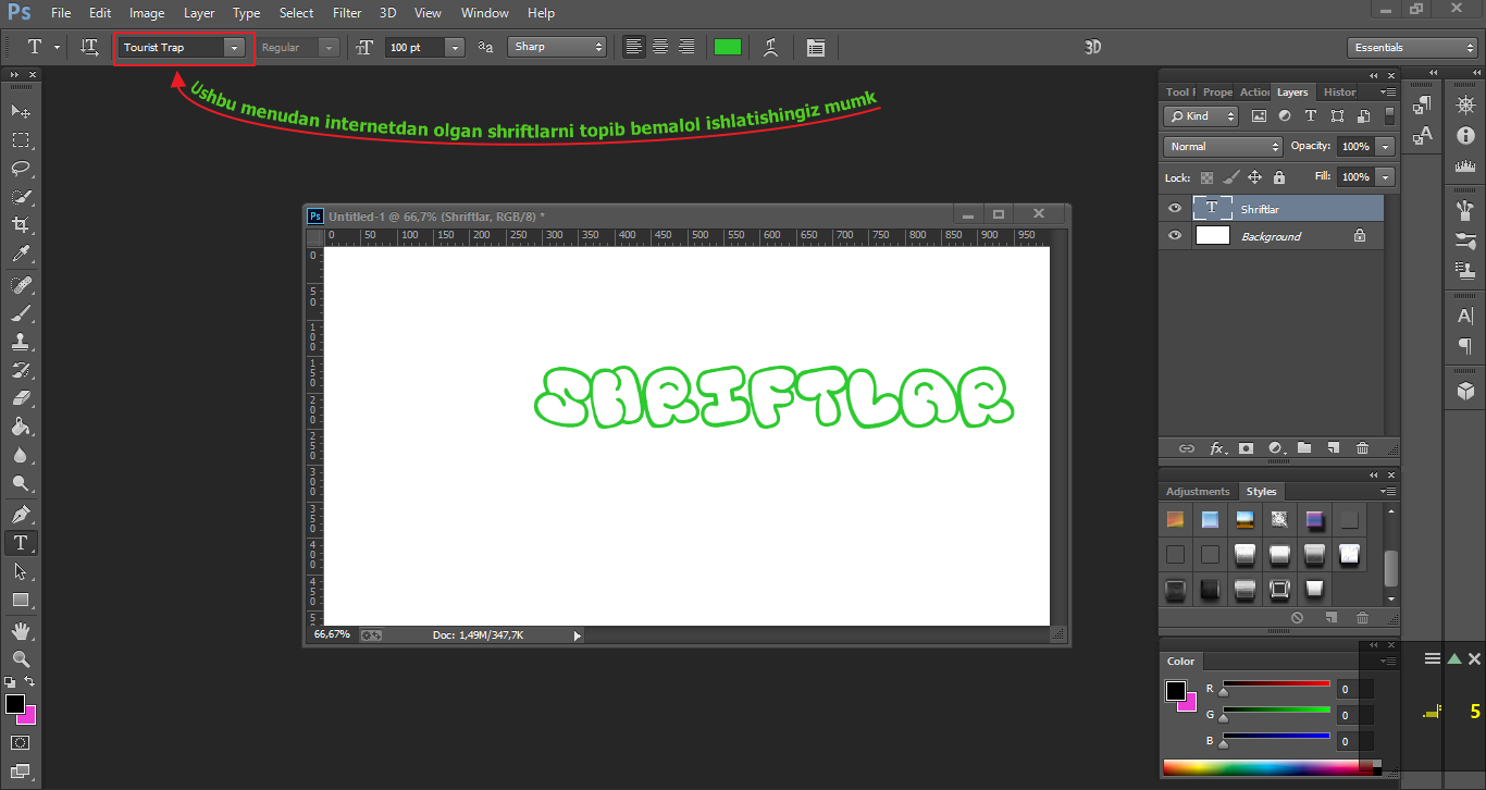 Photoshopga shrift qo'shish