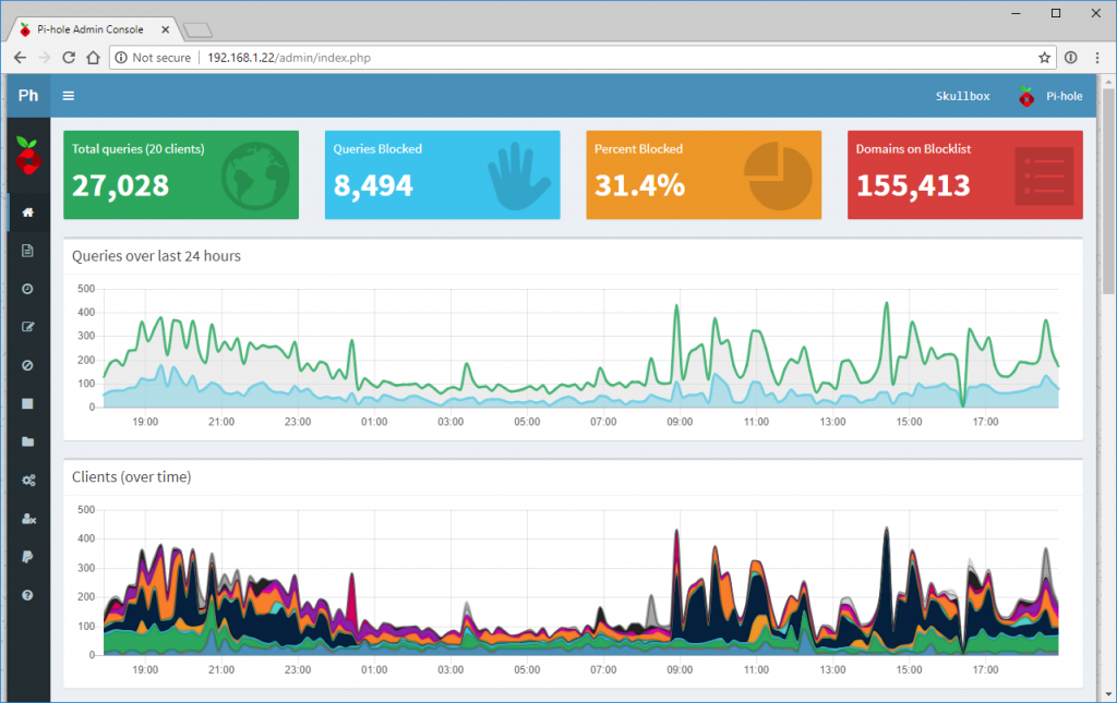 Pi-hole is free, but powered by your donations. In addition to blocking advertisements, Pi-hole has an informative Web interface that shows stats on all the domains being queried on your network. Pi-hole works fine with an existing DHCP server, but you can use Pi-hole’s to keep your network management in one place.
