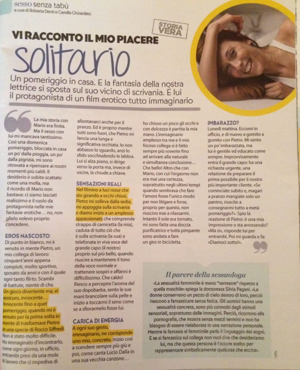 La masturbazione: regalatevi il piacere solitario Mi sento molto in imbarazzo, poiché a volte mi capita di desiderare di masturbarmi . Nella sua rubrica lei ha spesso detto che non bisogna vergognarsi e che è una pratica da "coltivare" poiché migliora l'intimità anche di coppia .