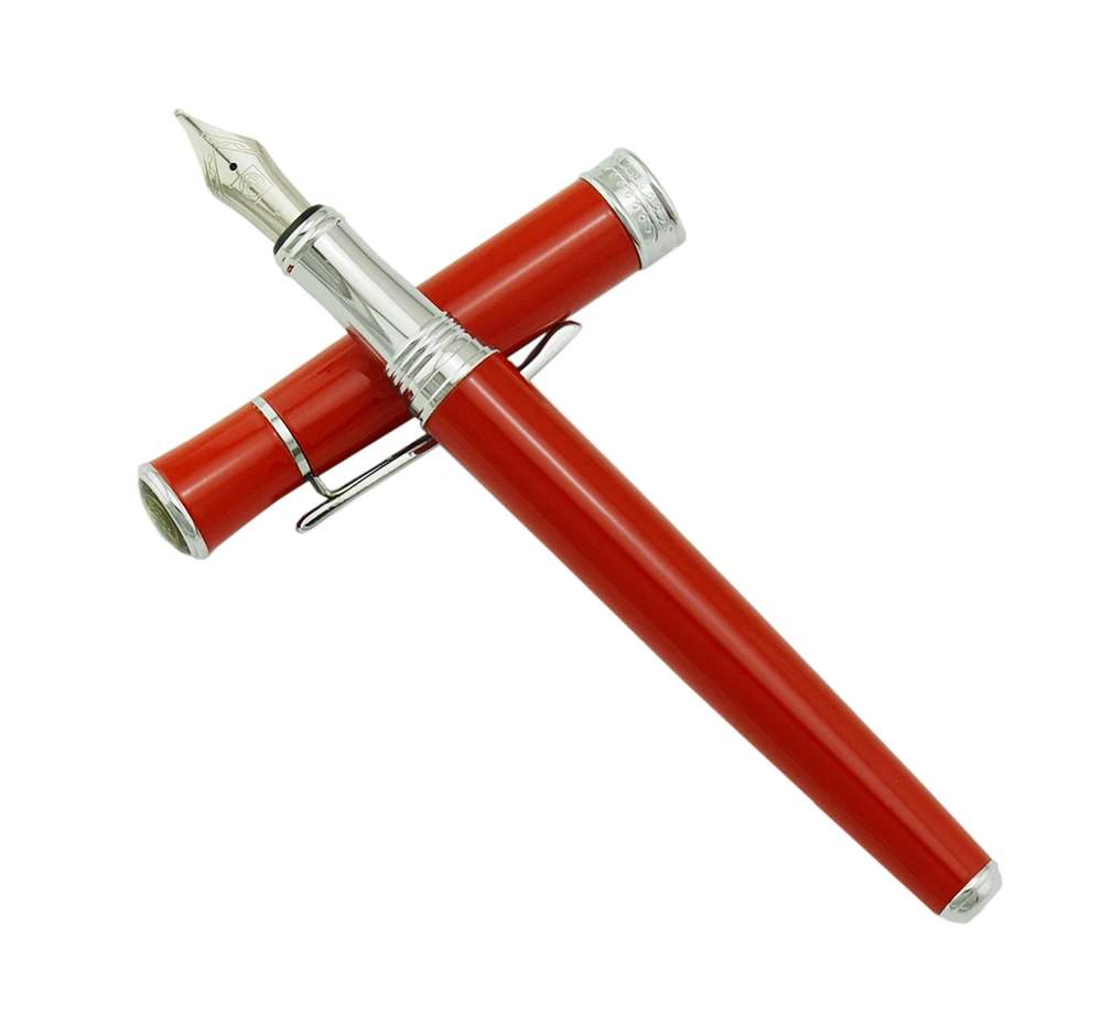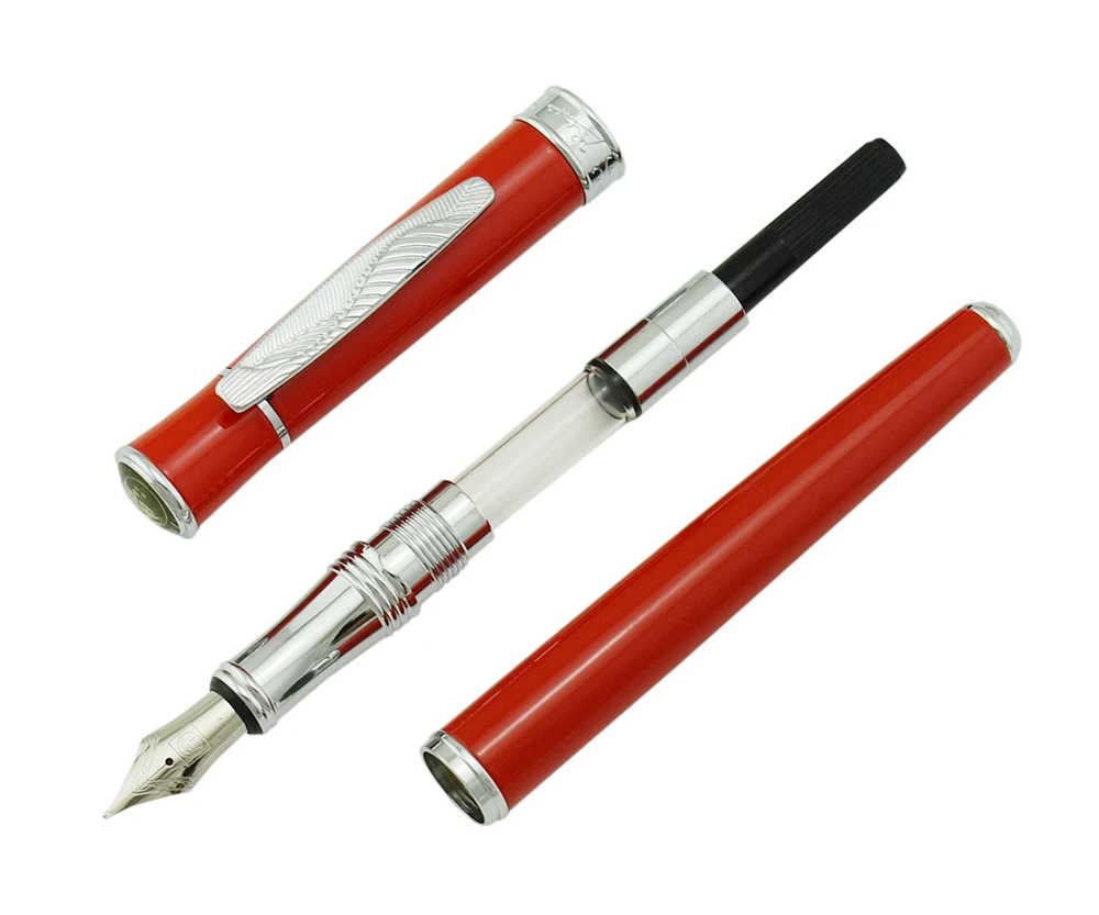 "Picasso 607 Red Fountain Pen Fine Nib Silver Trim Collection Luxury Gift Pen Set Unique Style Leaf Pattern Clip" * Buy Now Just For 13$