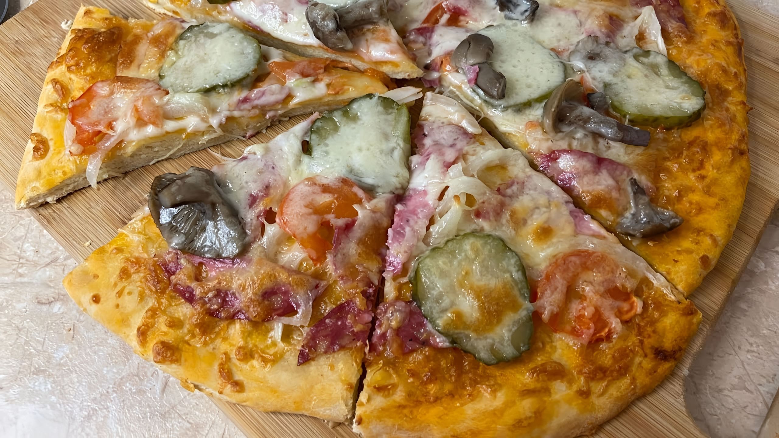 Пицца на тонком тесте на кефире