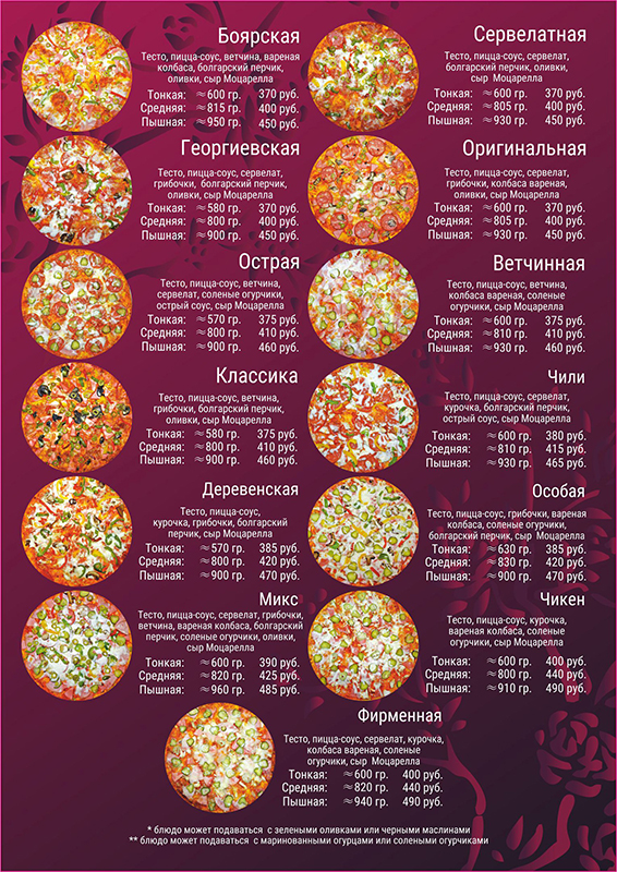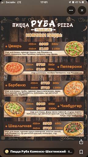 Пицца руба меню