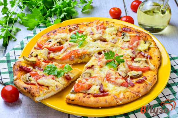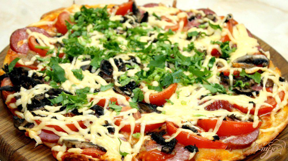 Пицца с шампиньонами колбасой рецепт 113 фотографий